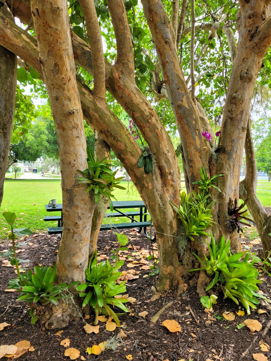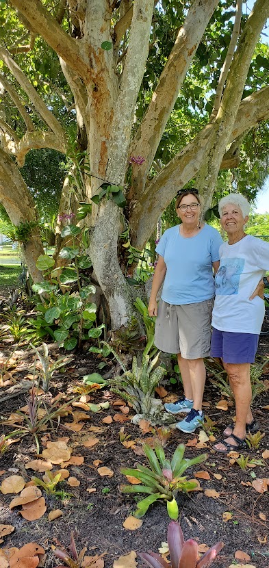 Charlette Roman and Linda Shockley, friends of Calusa Garden Club, have been Marco Island orchid growers for over 20 years. They recently donated some of their collection of orchids to the garden, and Roman is pictured with Foley mounting orchids in the trees in the new garden. In addition to orchids, the garden has a huge variety of bromeliads, some hanging from trees and some planted in the ground, many tillandsia, and a staghorn fern. The Calusa Garden Club’s plan for the new garden is to plant it now during our Marco Island rainy season, and to nurture it and improve it this coming year in order for it to be ready for the club’s 40th anniversary celebration in the fall of 2023.